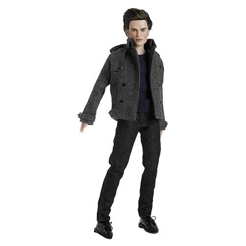 PRODUCT DESCRIPTIONS:Sculpted in the likeness of the film's character, Edward Cullen (as portrayed by Robert Pattinson), is approximately 17" tall and includes 14 points of articulation (neck, shoulders, elbows, wrists, chest, hips, knees, and ankles). Edward Cullen features the 17" Matt O'Neill body sculpt. He features hand painted features and rooted saran hair. Edward comes dressed straight from the movie in a t-shirt, jeans, socks, shoes with working laces, and tailored coat. Released in Fall 2008 as a part of the Twilight Collection, Edward Cullen is a limited edition of 2000 pieces. Robert Tonner is proud to present a preview of his latest collection inspired by the hit film, Twilight. Bella Swan and Edward Cullen are represented in fine quality vinyl/hard plastic with rooted saran hair and hand-painted facial features. Each collector figure possesses multiple points of articulated joints for maximum posing ability.