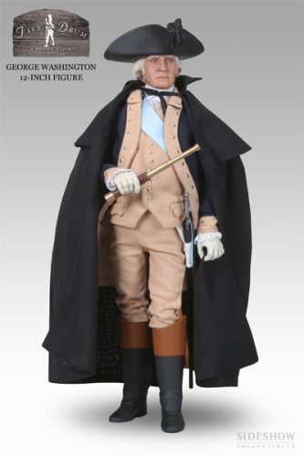 PRODUCT DESCRIPTIONS:Limited Edition of 2000. The George Washington Figure Features: · An authentic George Washington likeness · Over 30 points of articulation · Genuine cloth fabric outfit including Overcoat with Cape featuring Rank Star, Tricorn Hat, Tailcoat, Vest, Breeches, Stockings, Boots and Baldrick · Telescope and Sword Hanger with Scabbard and English Spur · Map of Yorktown · Sideshow Collectible's signature three-piece display stand What can possibly be said about one of the most influential and patriotic founding forefathers that have not been said before? George Washington - a man quickly promoted through the ranks of the military for his courage, quick thinking and practical military strategies. A man who brought together the British armed forces against the French Army in 1755, and again during the American Revolution of 1776. And after the war, a man who was unanimously elected into his position by the Constitutional Convention of Philadelphia in 1789 as the first President of the United States. Everything has a beginning and George Washington was the beginning of a long-standing and honorable tradition that commemorates the very spirit of American Freedom. Artist(s): Tim Miller of Bad Egg Studios Product Type: 12-inch Figure Product Size: 12" H (304mm)* Est. Box Size: 14" H (356mm) x 9" W (229mm) x 3" D (76mm)*